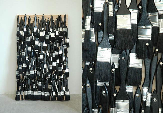 Brush Work (crutch), Shovel Work mixed media on wood, 147 x 30 x 5 cm, 127 x 45 cm 2006