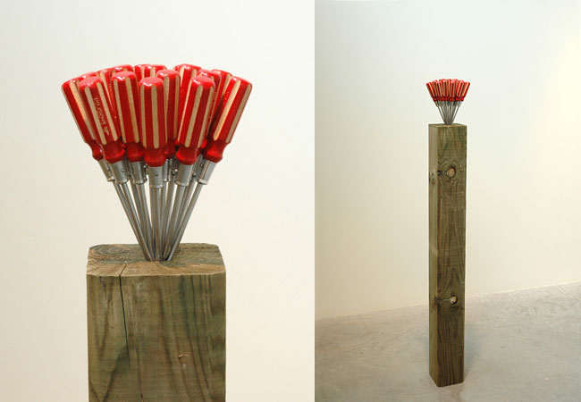 Screwdriver work (swordfish) pressure treated pine beam and screwdrivers, 150 x 15 x 15 cm, 2006