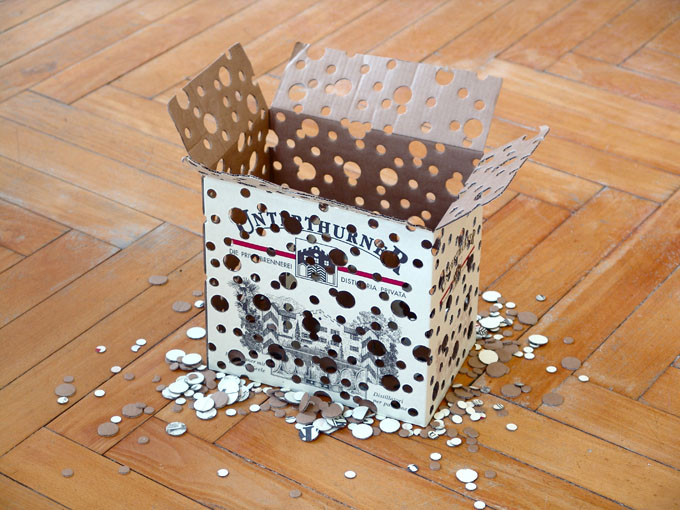modified wallpaper on canvas, plexyglass case, 30x30x12 cm 2012