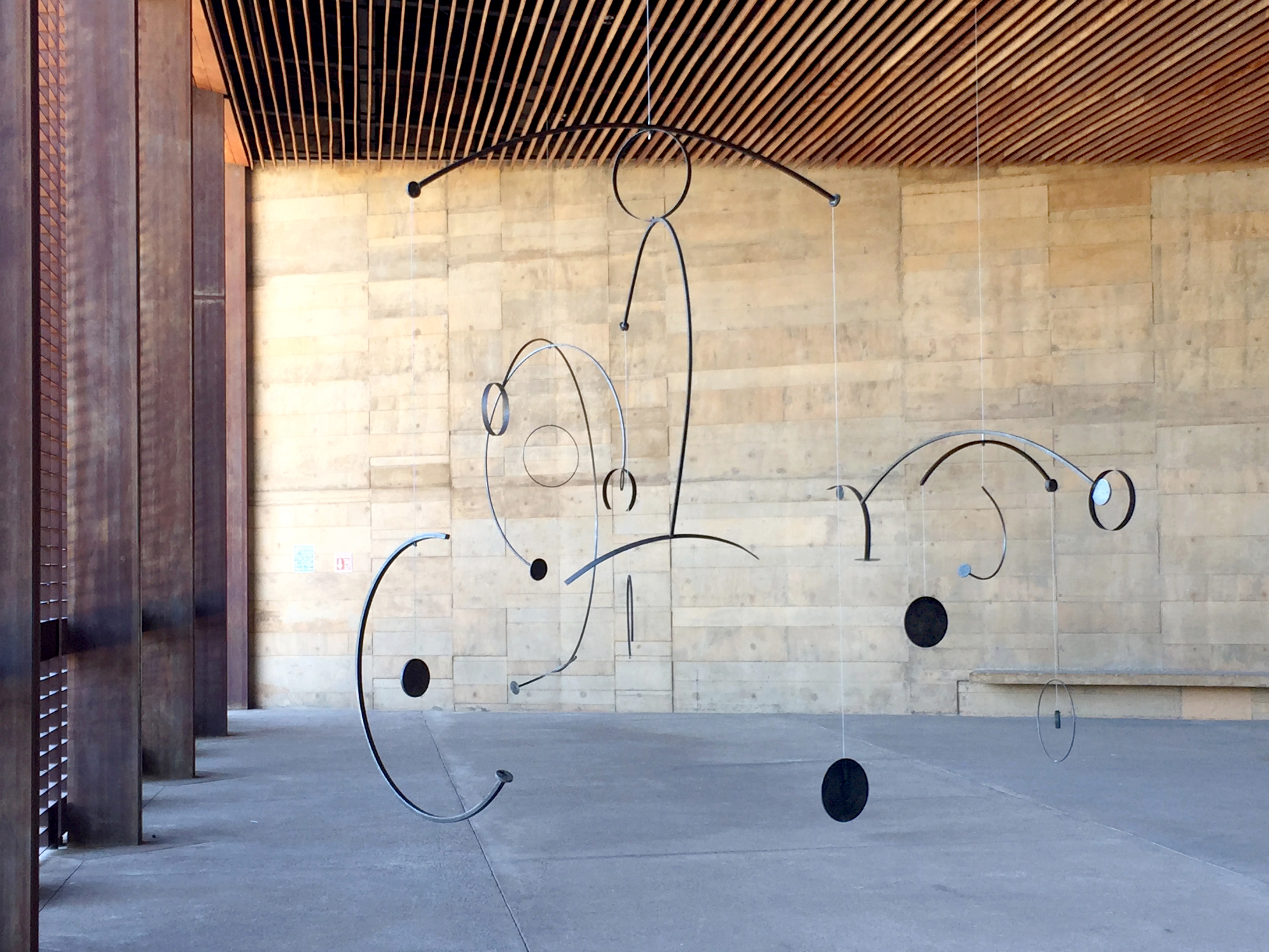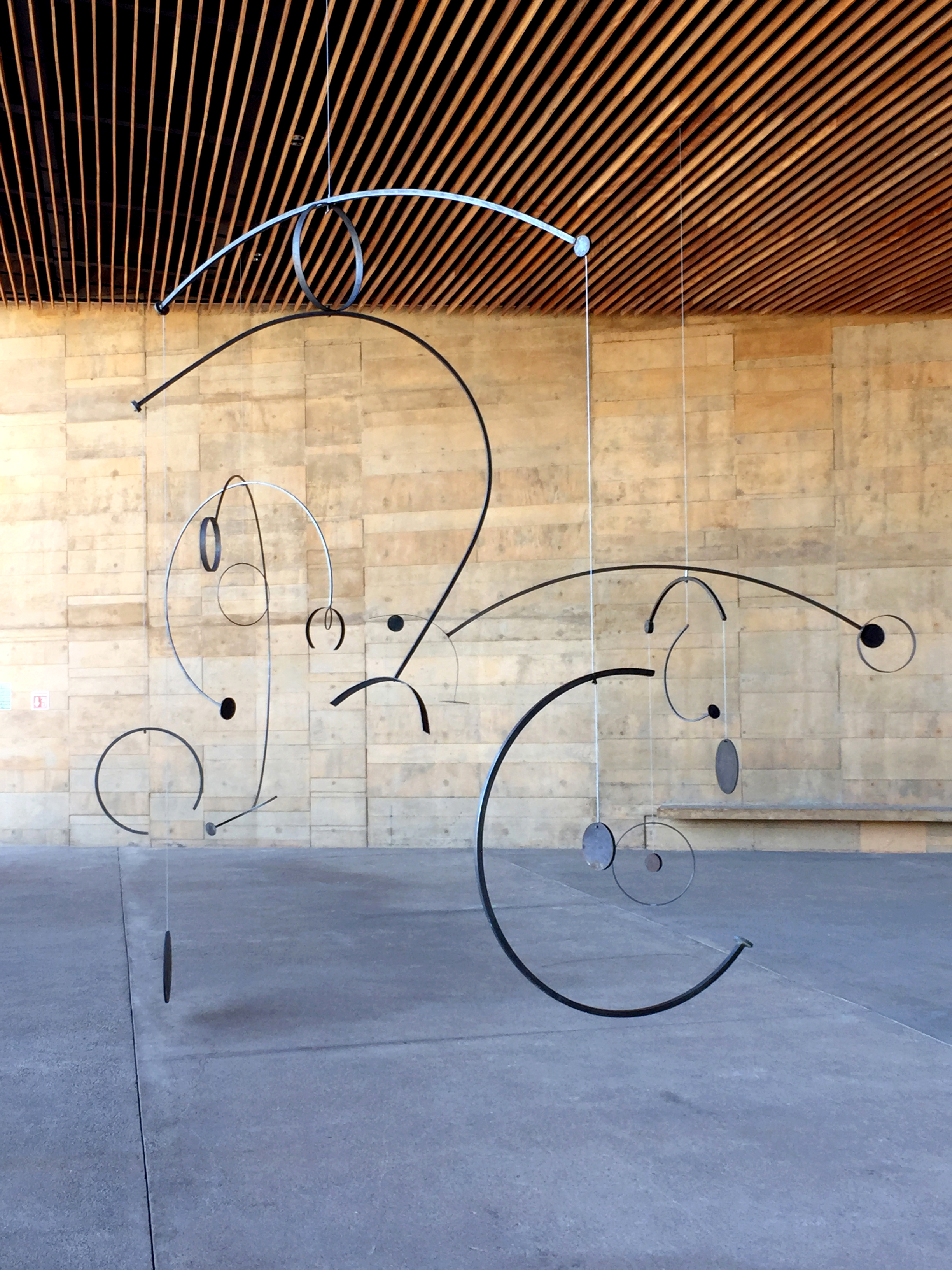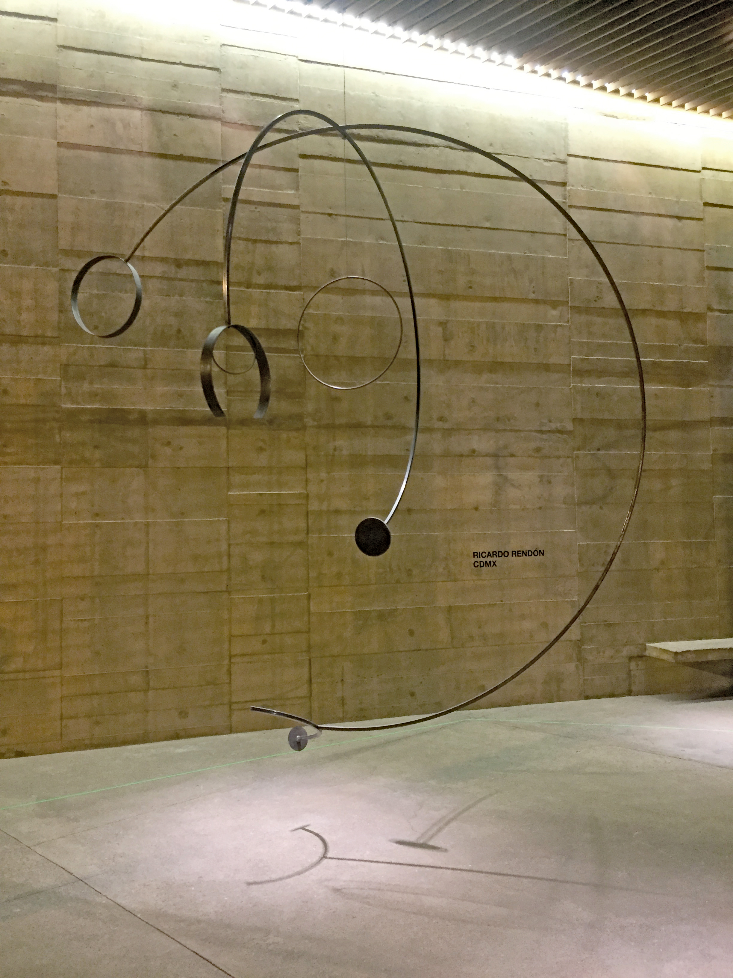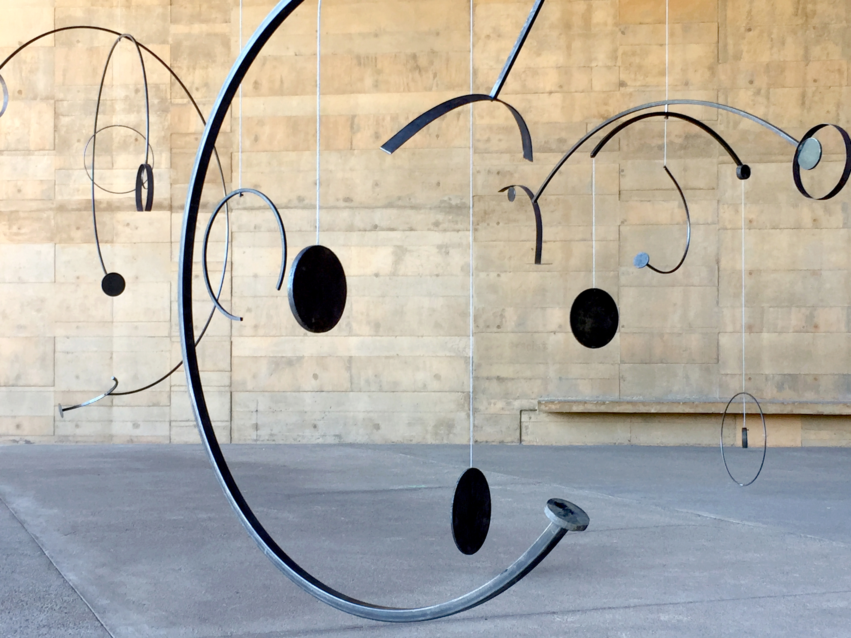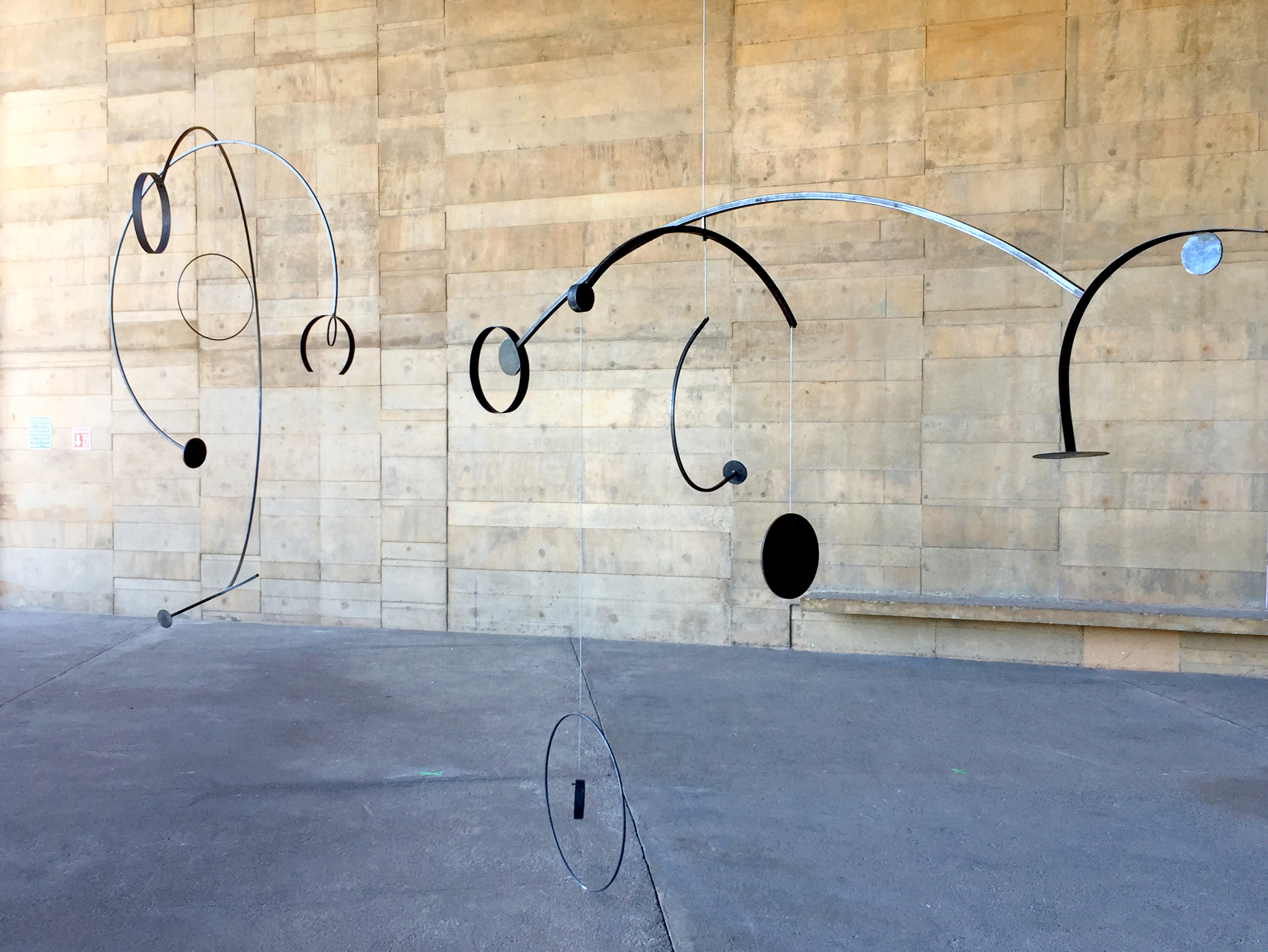The installation is made up of a series of mobiles with iron bodies in continuous balance and tension; works that happen and act thanks to the weight and gravitational force; works conditioned by external agents such as the participation of the public or the energy of the wind to modify their structure.