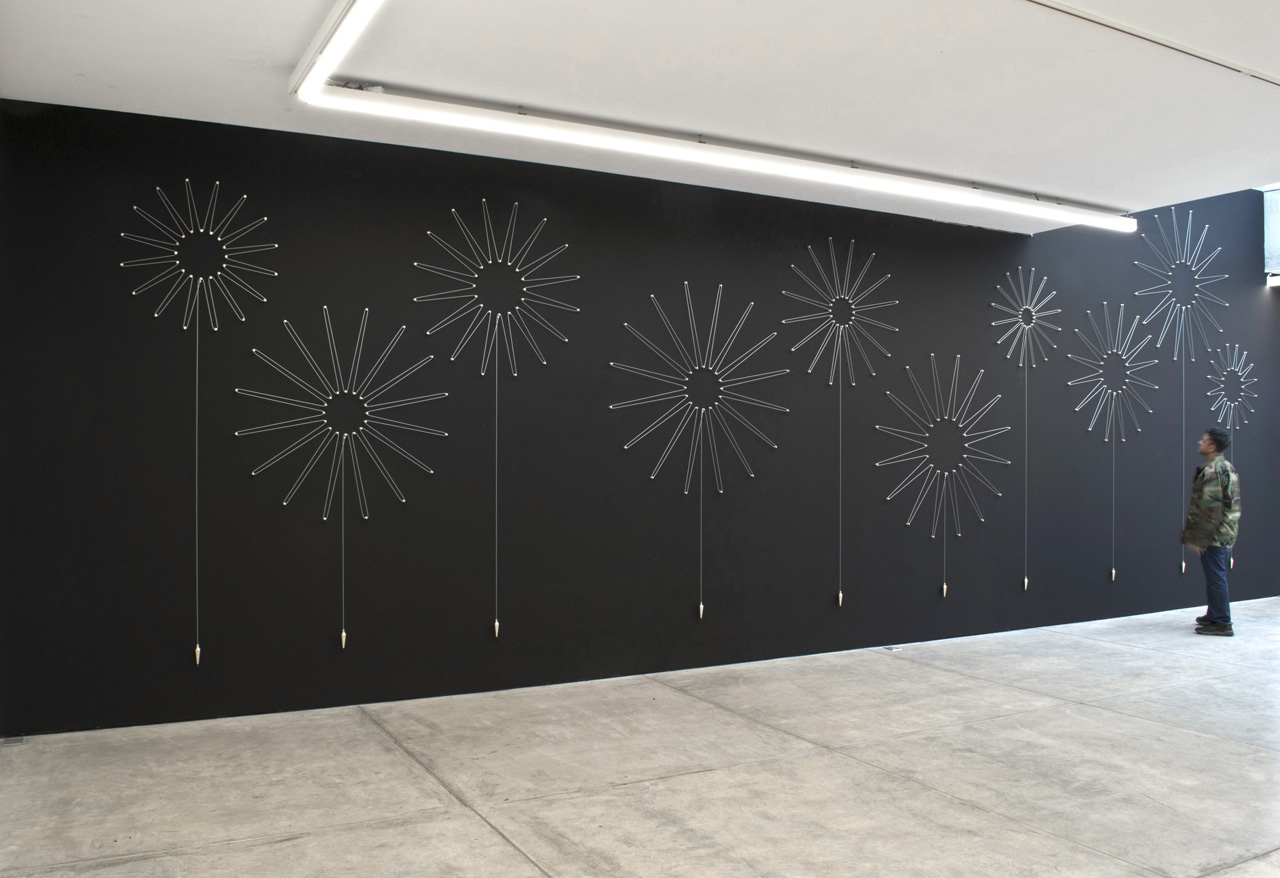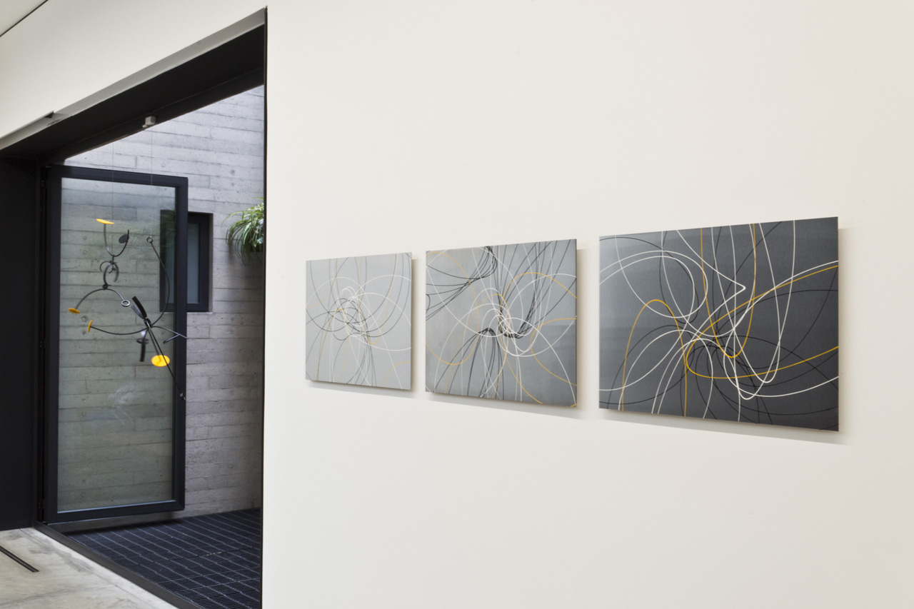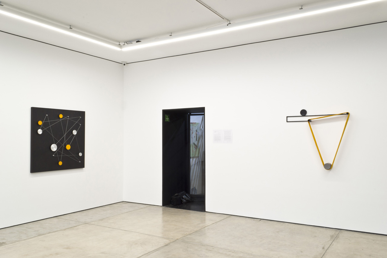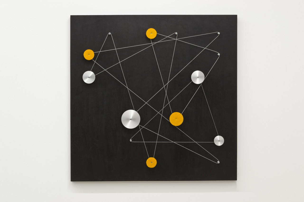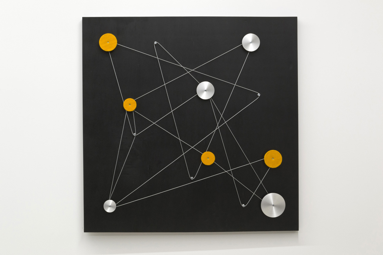 steel cable, aluminium and industrial felt on wood with asphalt, 120 x 120 x 8 cm, 2019