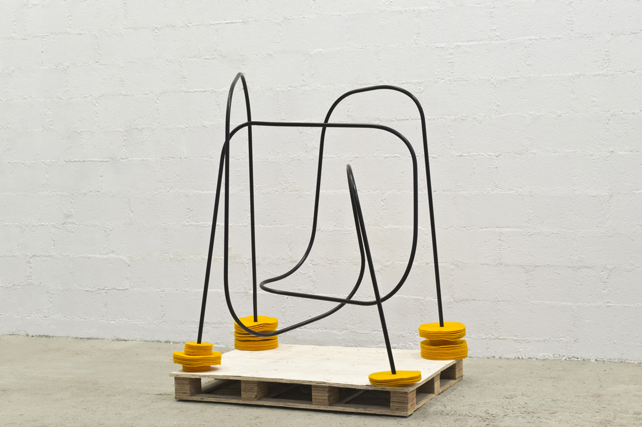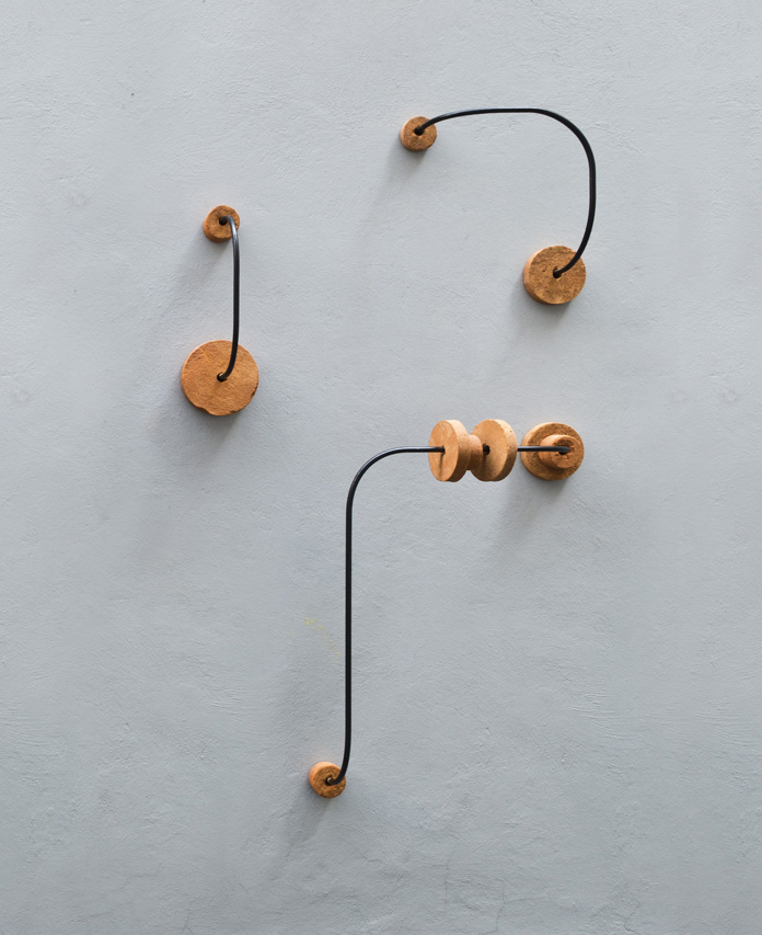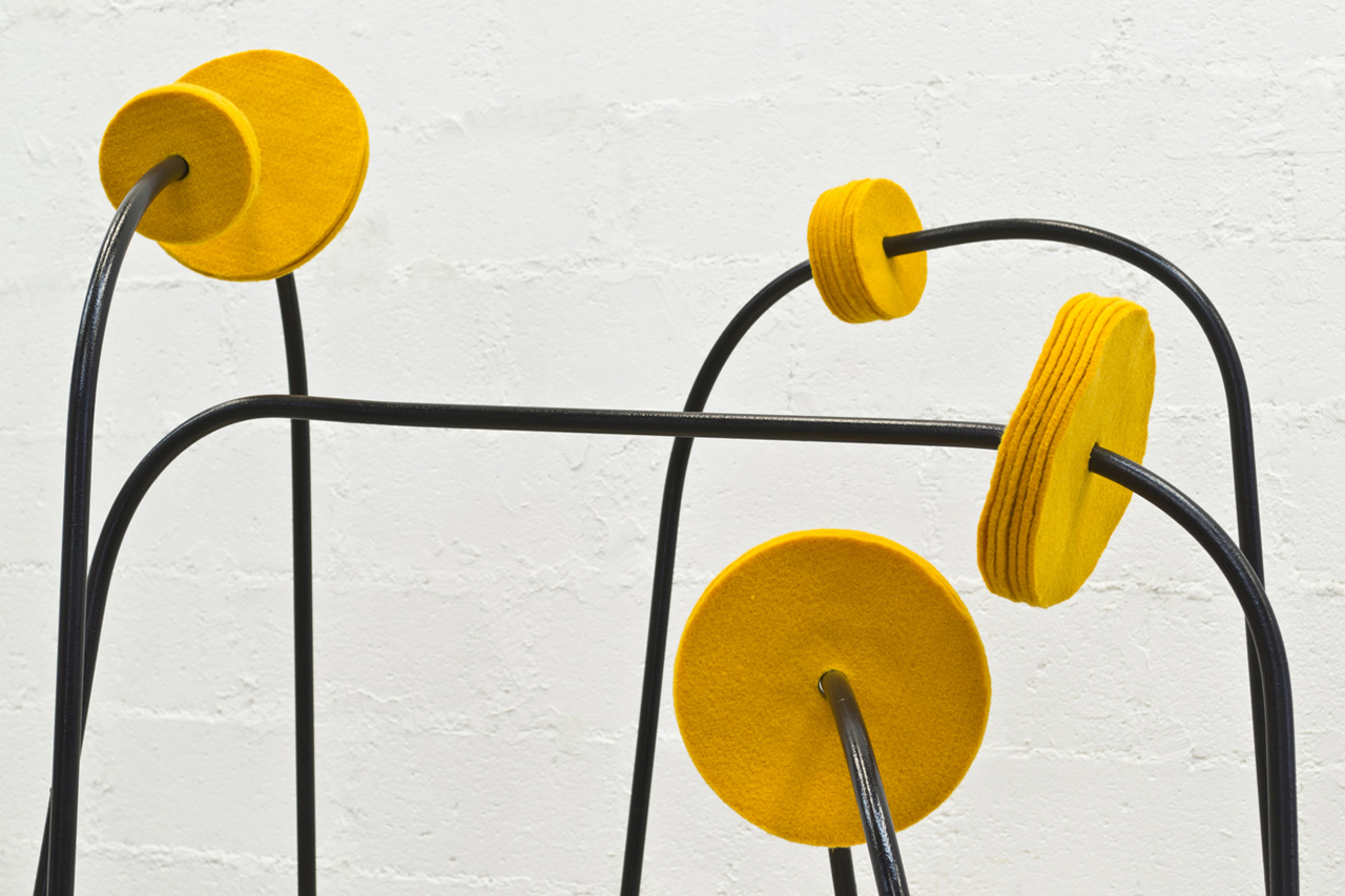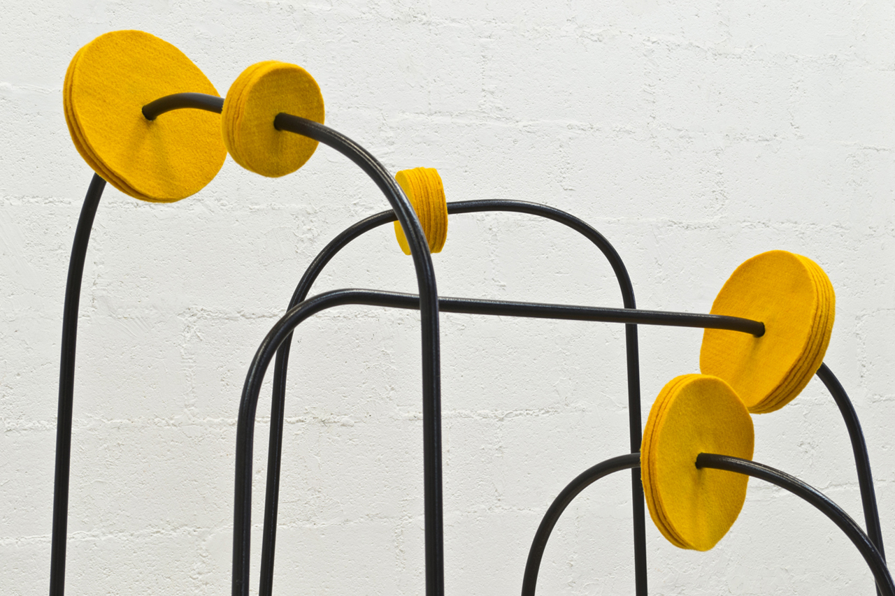 Interactive sculpture for pronation movement with iron bars and industrial felt