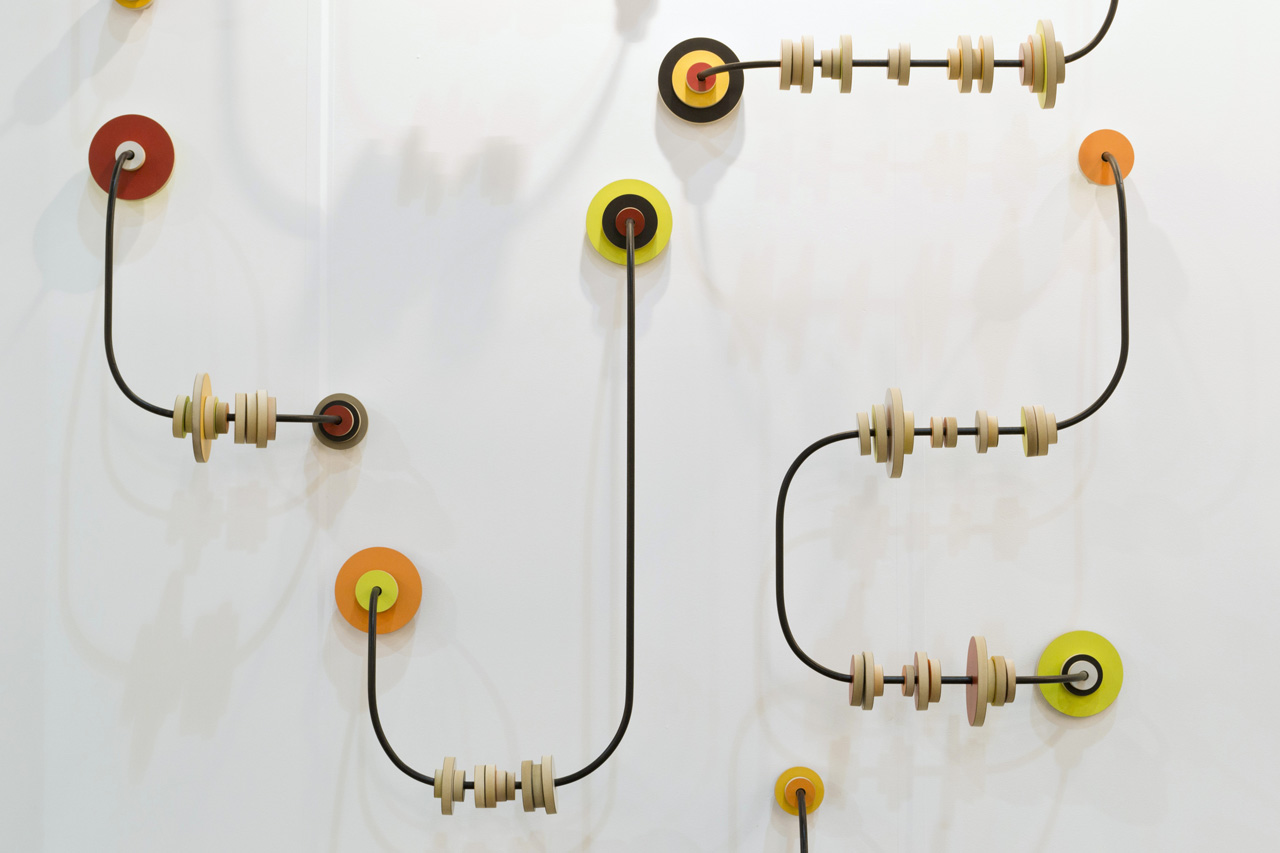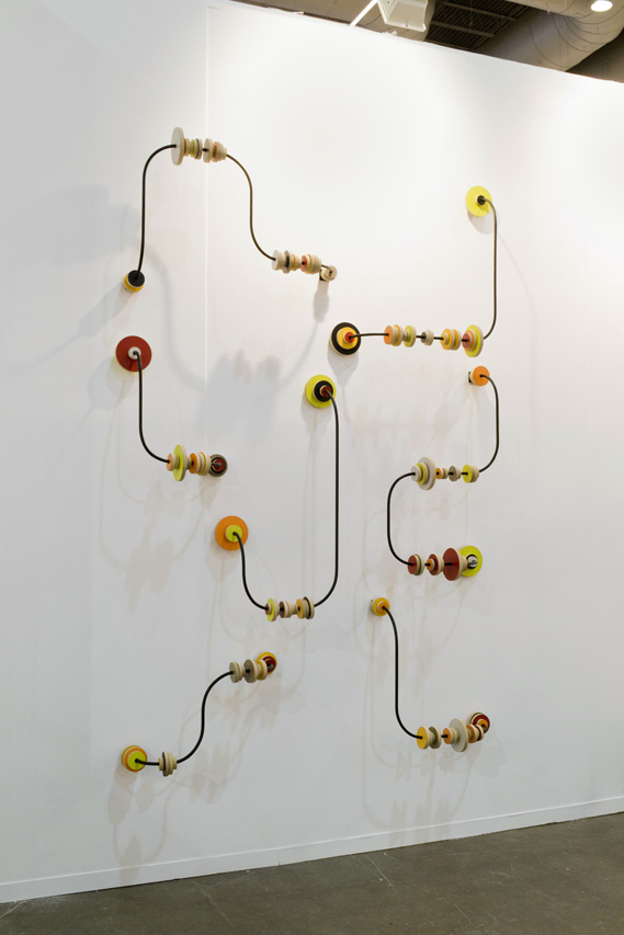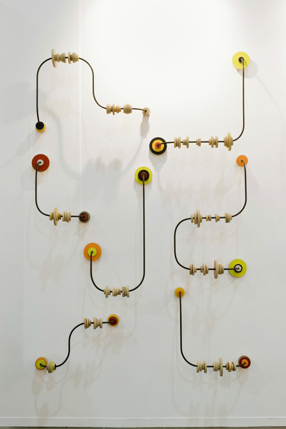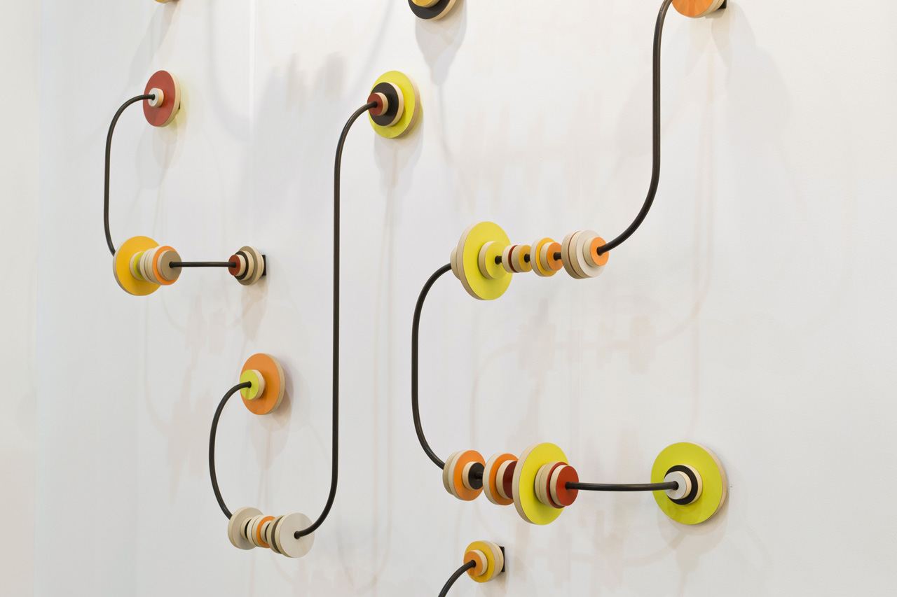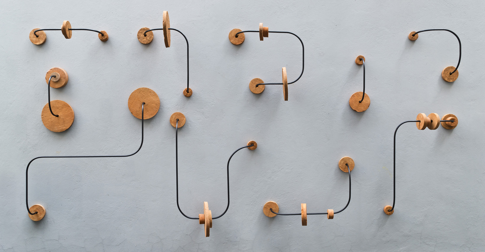 Interactive sculpture for pronation movement with iron bars and industrial felt