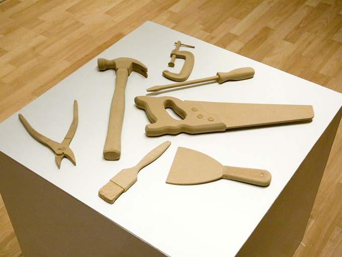 Abordando distintos aspectos de la actividad productiva, desde el continuo registro y evidencia de sus procesos de realización hasta el empleo de diferentes utensilios de trabajo como recurso plástico, caja de Herramientas permite la conformación de un discurso en torno al concepto del trabajo y los oficios como posibilidad estética.